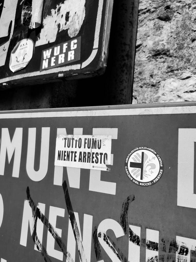 Da qualche anno ho iniziato a osservarli con più attenzione, ogni volta che mi trovo davanti a una di quelle superfici diventate bacheche improvvisate. Ce ne sono di ogni tipo: sarcastici, polemici, politici, legati a movimenti sociali o a battute fulminanti.