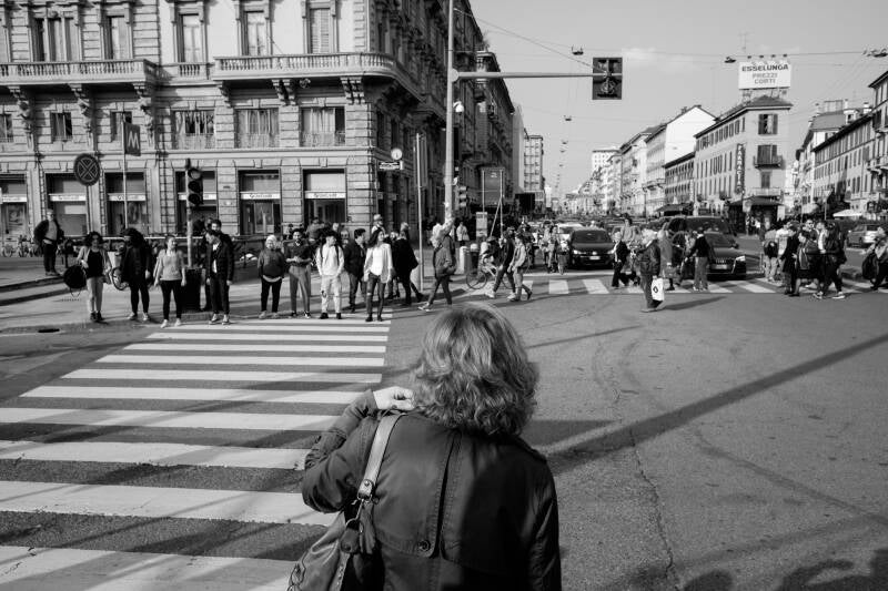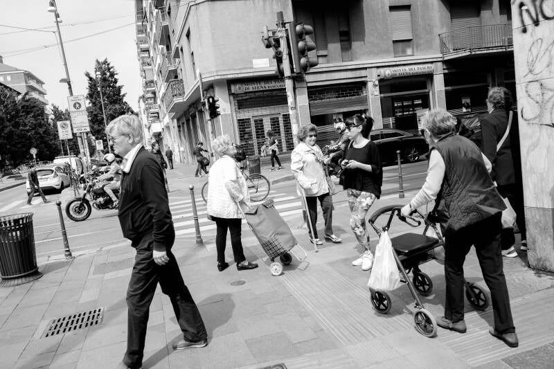 Il fervore della strada è tra i primordi della nostra passione per la fotografia; ci spostavamo per le strade di Milano - sempre affrettate, efficienti, mescolate - e ne raccoglievamo un attimo di grazia.